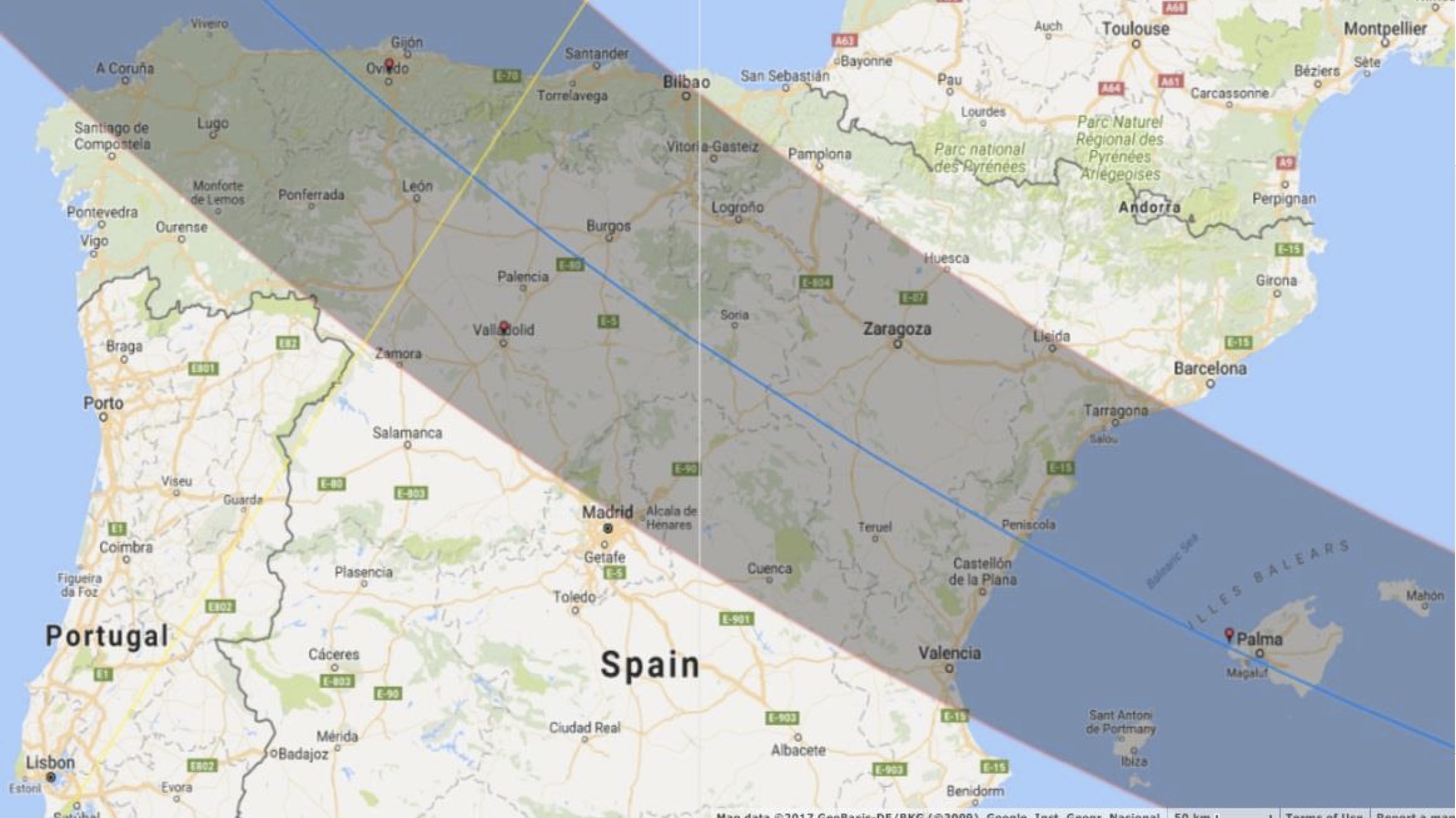 The Sun will be completely covered by the Moon in a 300 km wide strip that crosses the northwest, center and east of the Iberian Peninsula, as well as the Balares Islands.